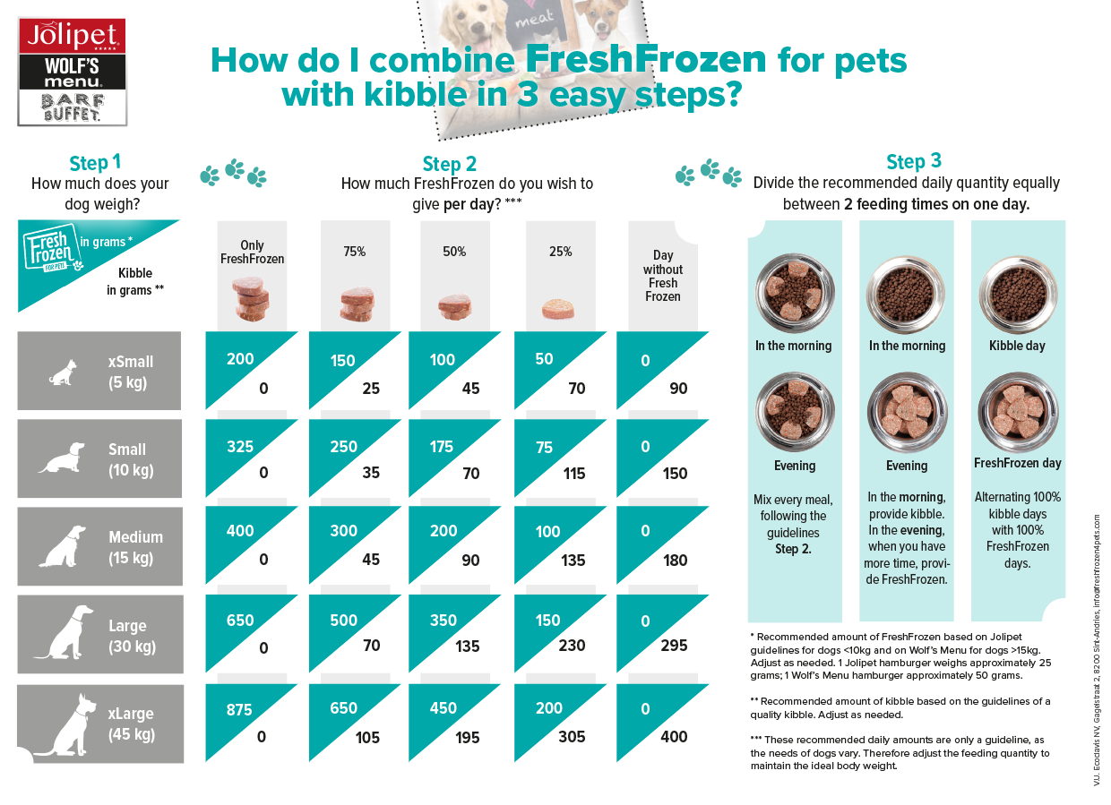 To determine how much FreshFrozen food to give your dog, just use our simple 3-step plan.
