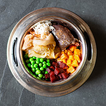 Onze slagers combineren deze dierlijke ingrediënten met 1 koolhydratenbron (rijst of aardappelen) en groenten en fruit, dezelfde die jij en ik kopen in de supermarkt. Onder de meest gebruikte groenten en fruit vinden we volgende terug: